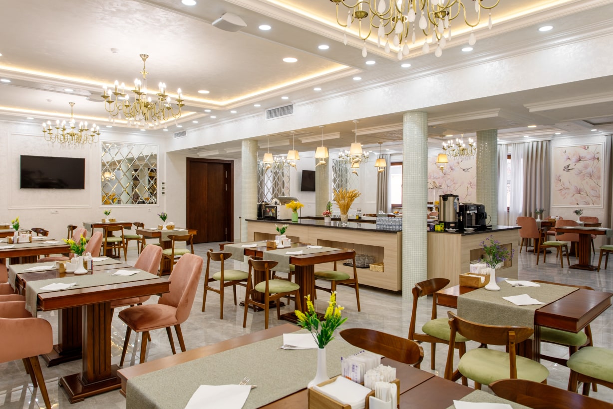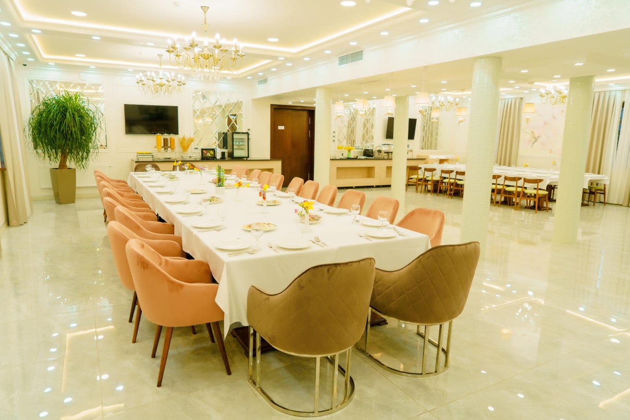 Общая оснащенность гостиницы довольно скромная – небольшой ресторан для завтраков и конференц-зал на 16 человек. Однако, гостиница «Навруз» может похвастаться превосходным современным дизайном – каждый номер оформлен со вкусом, и это же касается ресторана и конференц-зала. В каждой детали интерьера чувствуется работа талантливых дизайнеров.
